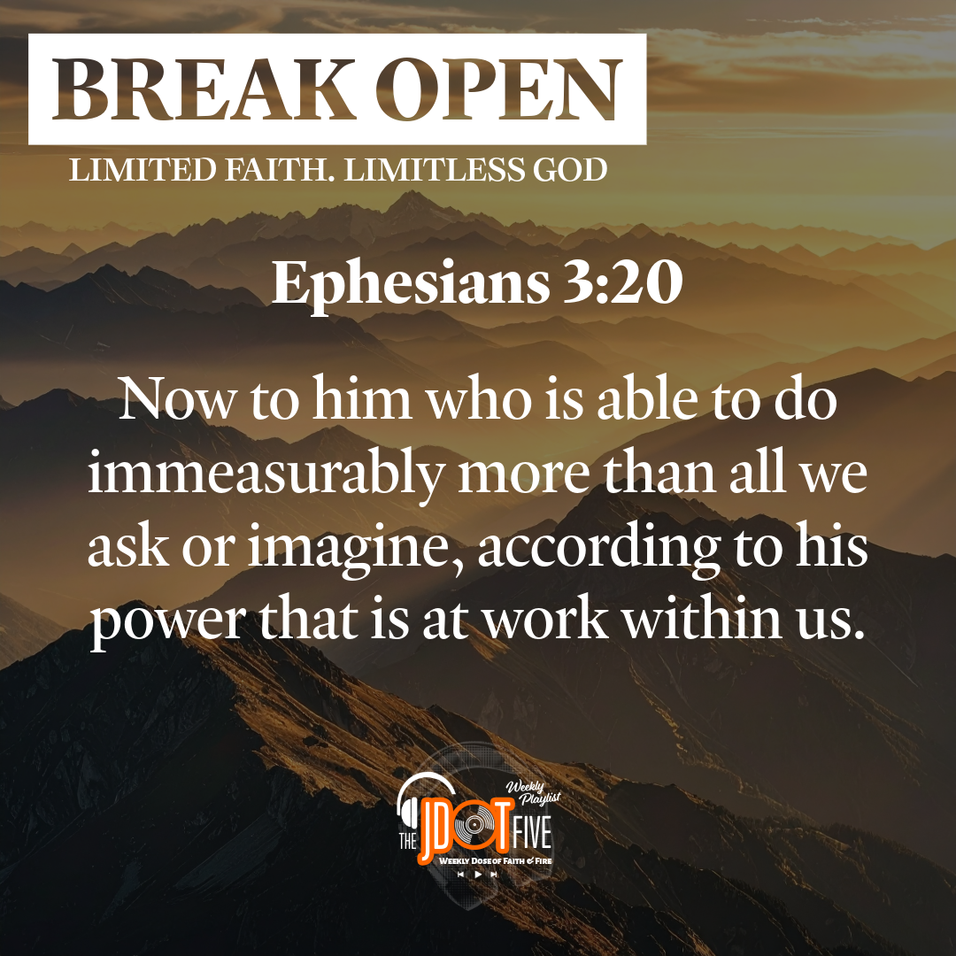 📋 BREAK OPEN Song Sheet (Downloadable PDF) → All 5 songs with "Why I Picked This One" explanations → Position markers (Position 3 — THE RESURRECTION SHIFT is the theological anchor) → Memory verse: Ephesians 3:20 → QR code for easy playlist access + streaming links
