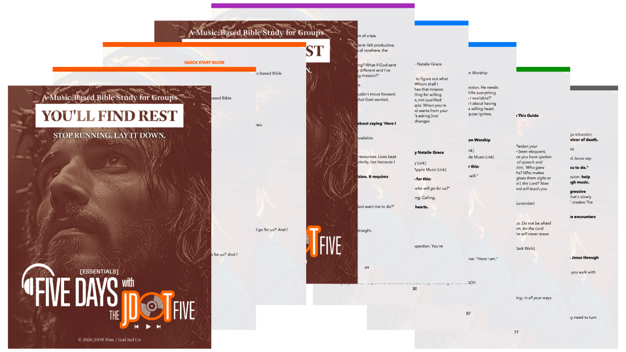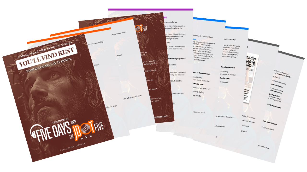FIVE DAYS with The JDOT Five (Essentials) is the complete curriculum guide that shows you exactly how to turn this week's playlist into a transformational group experience.